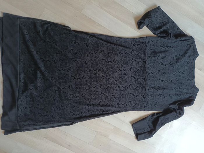 Robe noire H&M collection Impuls.taille L c'est assez prêt du corps, longueur en dessous du genou. Motifs relief...transparente