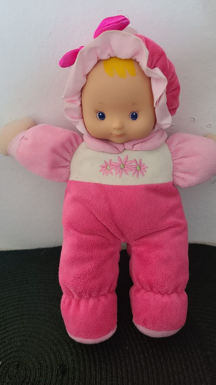 Doudou poupée Aimantine rose blanc fleurs 28 cm - photo numéro 1
