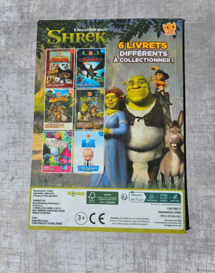 Livret d'activités 4/6 "Shrek" de la marque DreamWorks en collaboration avec Burger King A partir de 3 ans En voir plus : #Fannydsnlivres