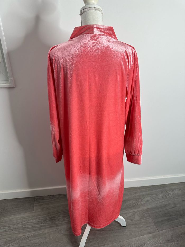 Robe de chambre peignoir long en velours corail et argenté Vintage T42/44 XL/XXL - photo numéro 3
