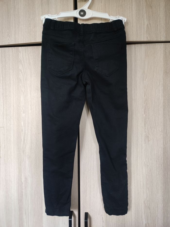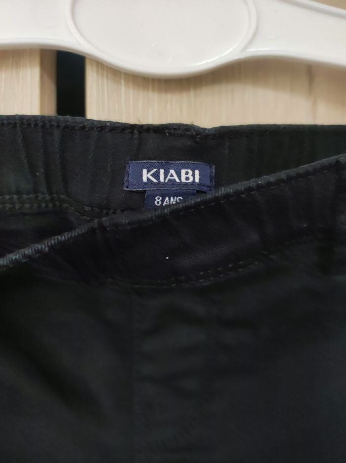Legging jean type tregging ( a enfiler) Marque Kiabi Taille 8 ans / 97 % coton / 3 % elasthanne ( matière jean) Coloris noir / fausses poches avant - 2 poches arrière / passants pour ceinture Coupe slim Parfait etat