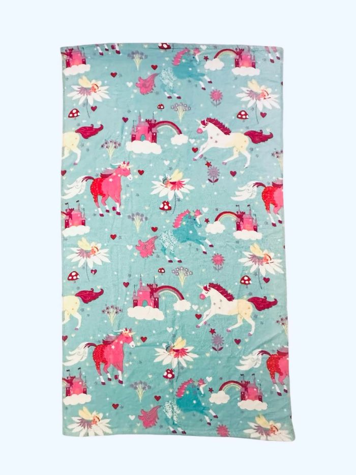 Drap de Plage Serviette de plage Licorne Bleu 90x170cm 100% Coton