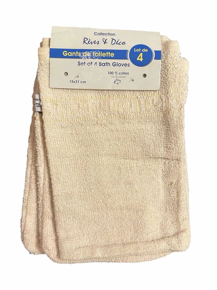 Lots de 4 Gants de Toilette Rêves & Déco 100%Coton Ecru