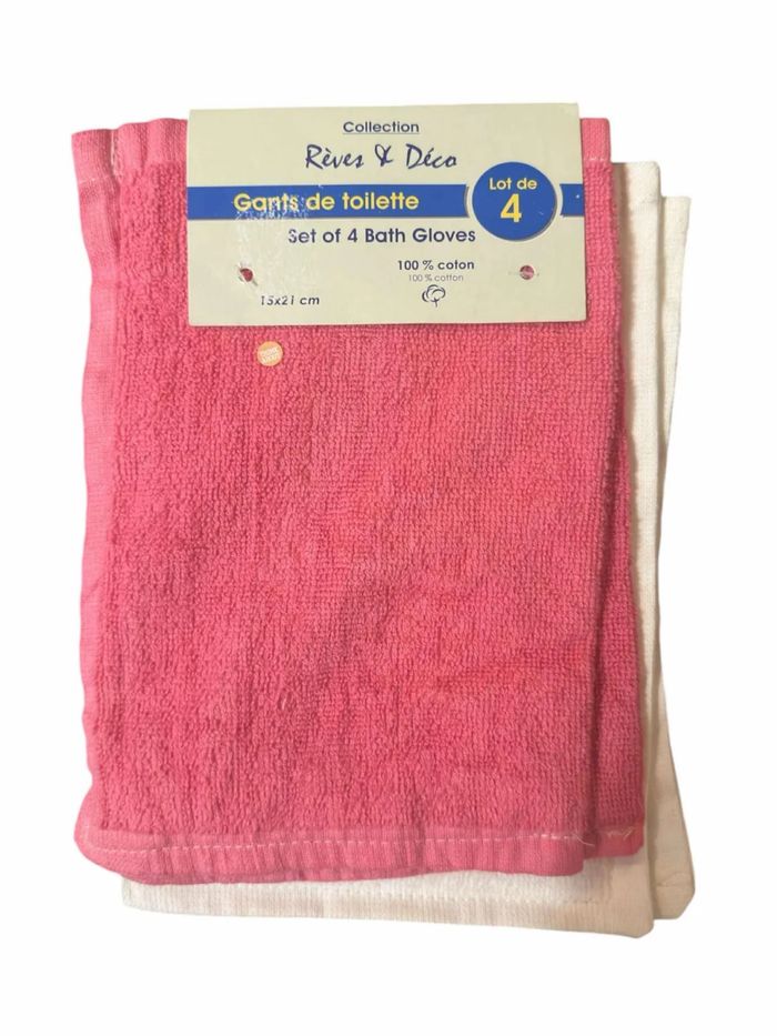 Lots de 4 Gants de Toilette Rêves & Déco 100%Coton Rose/Blanc