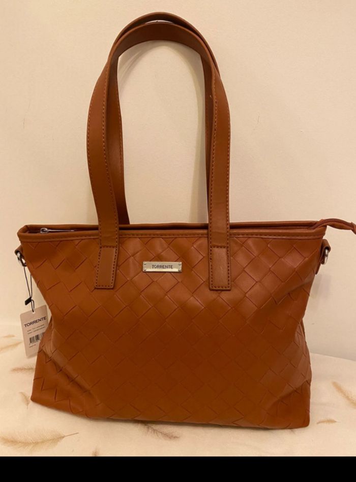Je vends ce sac à main de la marque TORRENTE, couleur marron, neuf avec étiquette. 👜 Design tressé élégant, idéal pour un usage quotidien ou professionnel. Très belle finition, avec fermeture zippée et anses solides. 📏 Dimensions : 42 cm de longueur x 27 cm de hauteur