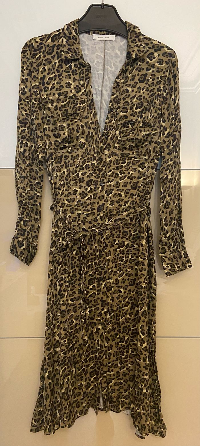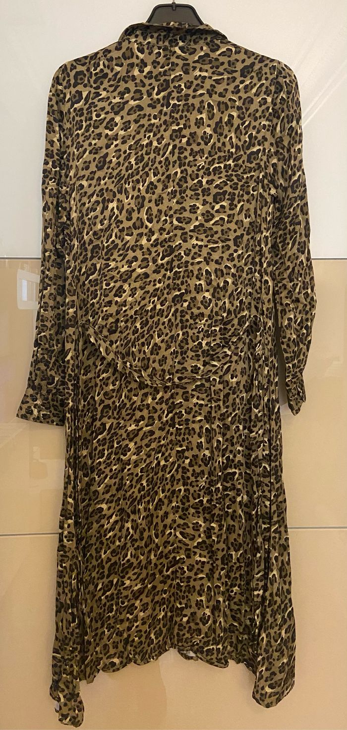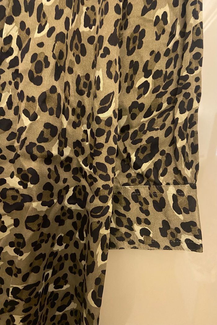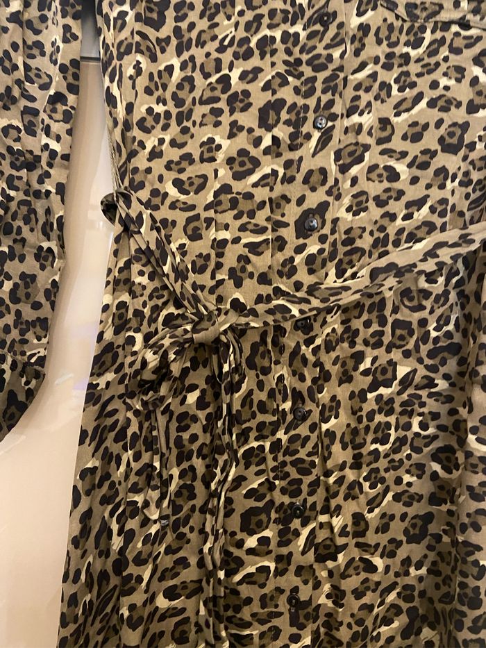 Robe chemise imprimé léopard Effet satin Kaki noir marron Ceinture à nouer Longueur 120 cm