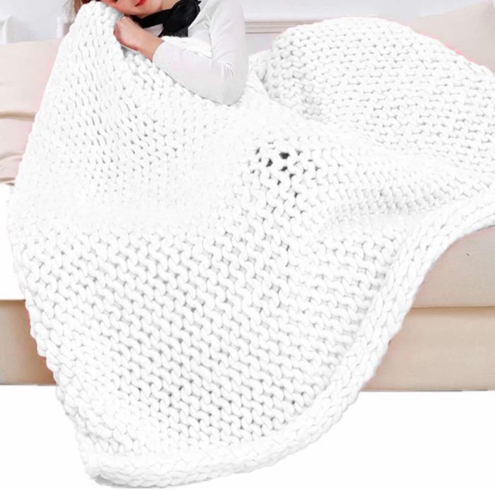 Plaid tricoté, avec un design volumineux et épais, idéal pour se blottir et se réchauffer pendant les soirées fraîches. Moelleux et confortable, avec une texture visuellement attrayante qui pourrait également servir de décoration pour un canapé ou un lit. Apprécié pour sa douceur et son look chaleureux.