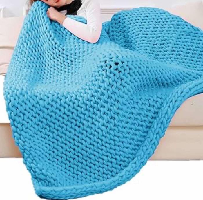 Plaid tricoté, avec un design volumineux et épais, idéal pour se blottir et se réchauffer pendant les soirées fraîches. Moelleux et confortable, avec une texture visuellement attrayante qui pourrait également servir de décoration pour un canapé ou un lit. Apprécié pour sa douceur et son look chaleureux.