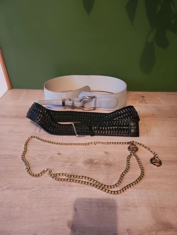 3 ceintures très bon état La noire et la dorée mesure 108cm de long La grise mesure 95cm