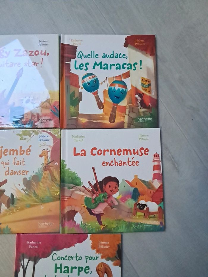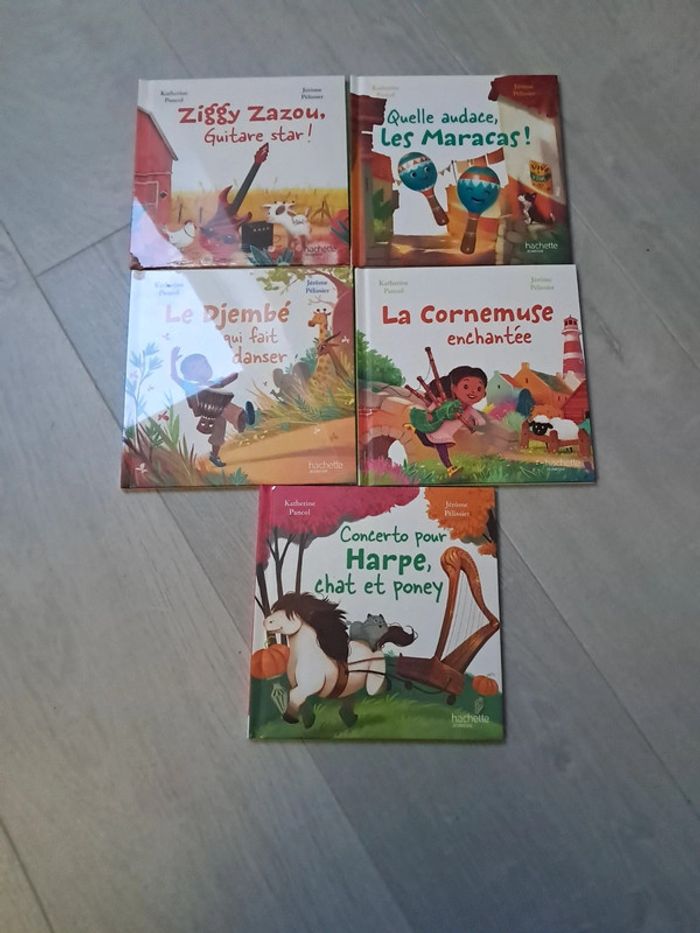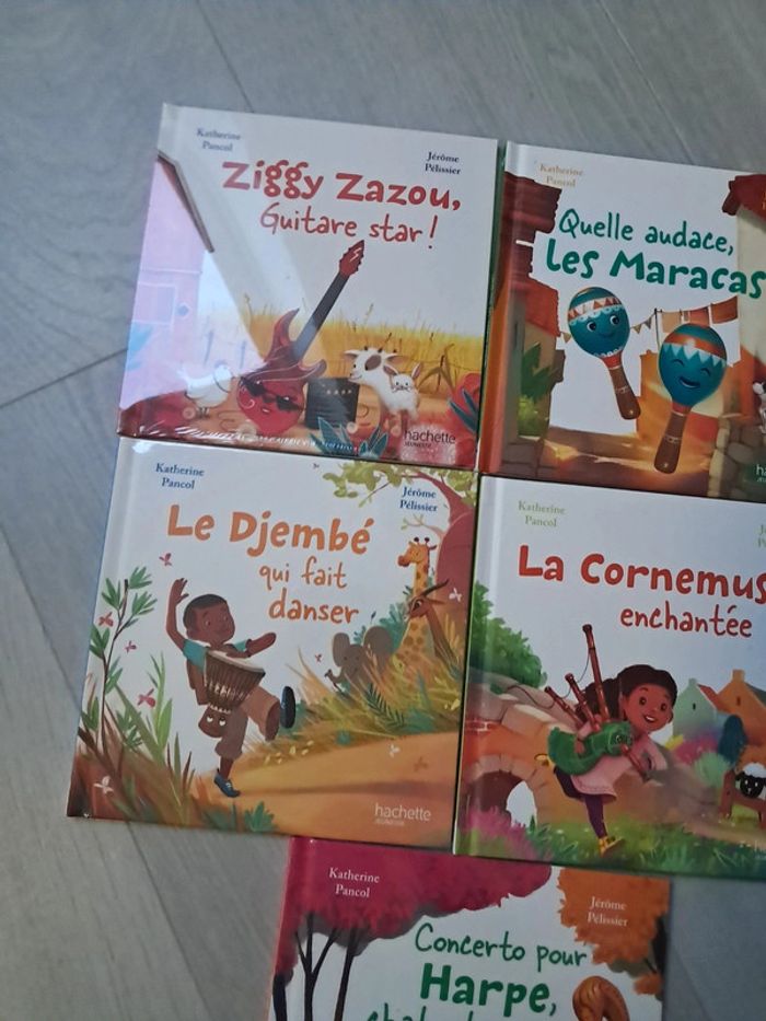 Concerto pour harpe, la cornemuse enchantée, le djembé qui fait danser, quelle audace les maracas, Ziggy zazou guitare star 3 sont encore dans leur emballage