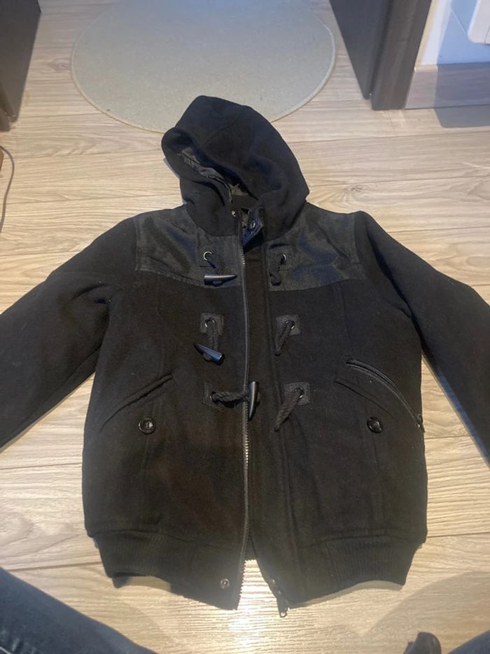 12 ans en très bon état veste matière manteau avec capuche ,poches à tirettes Fermeture éclair -boutons et boutons crochet pour la fermeture de la veste agréable à porter et idéal pour la saison #manteau #enfant #12ans