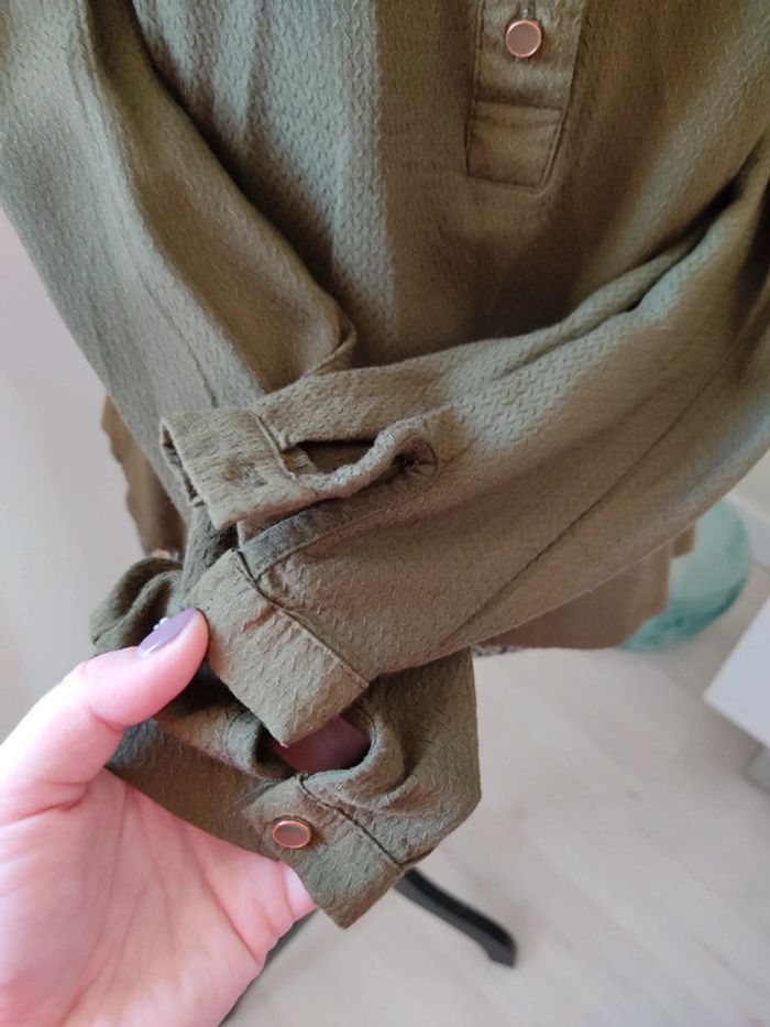 Blouse kaki en excellent état, il manque seulement un bouton au bout d'une des manches (photo n°4) #chemiseetblousepauline_kcl #dressingfemmepauline_kcl