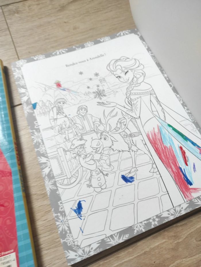 Lot de livres de coloriage.disney Fée clochette et reine des neiges Un seul dessin de commencé dans chaque #coloriagedisney