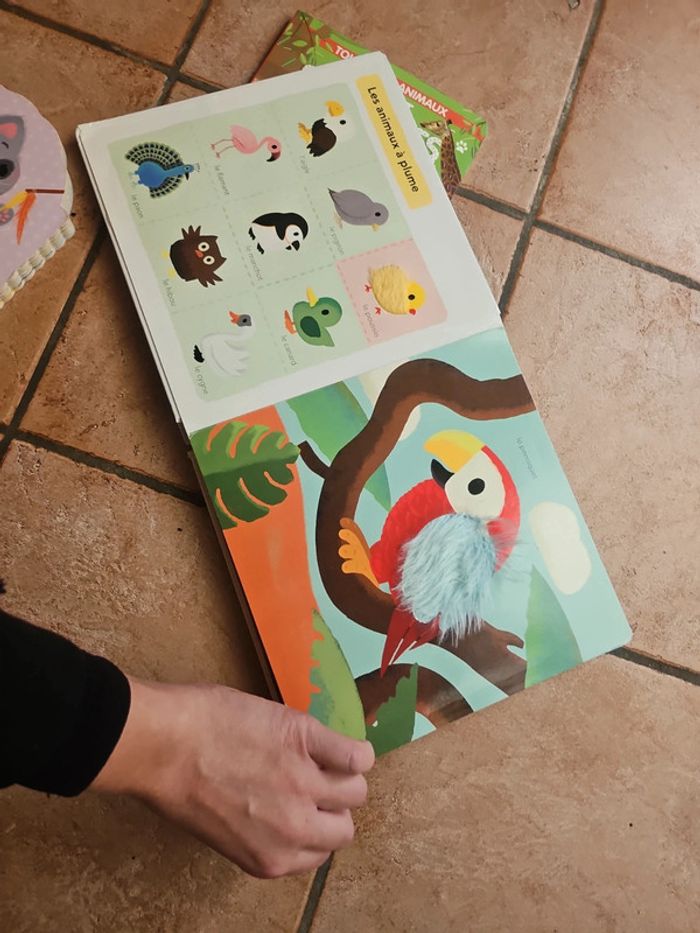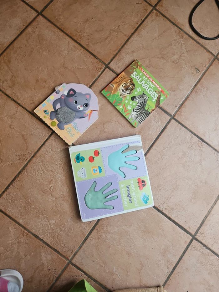 Lot de livre à toucher le grand imagier est abîmer sur la couverture et sur le côté mais les pages sont en bon état , le livre avec le petit est abîmer sur la tranche et l'autre est en parfait état voir photos #lotlivreatoucher #livreenfants
