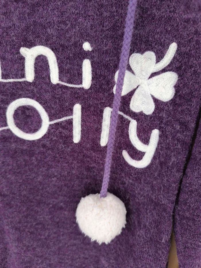 Robe pull Mini Molly violette , capuche, pompons blancs #loulaliefille4ans dans la recherche pour voir mon 4 ans