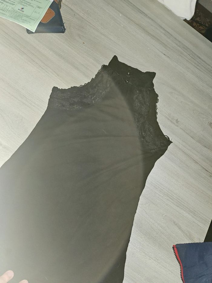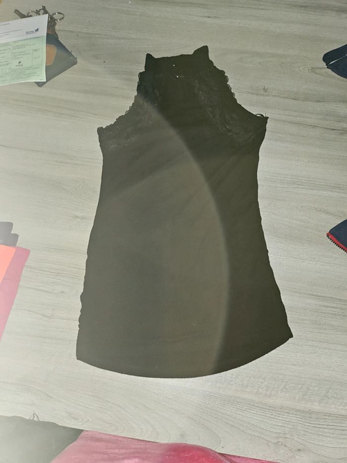 Top noir avec col et détail dentelle ,taille 34/36 en parfait état haut assez chic #femmechic #detaildentelle