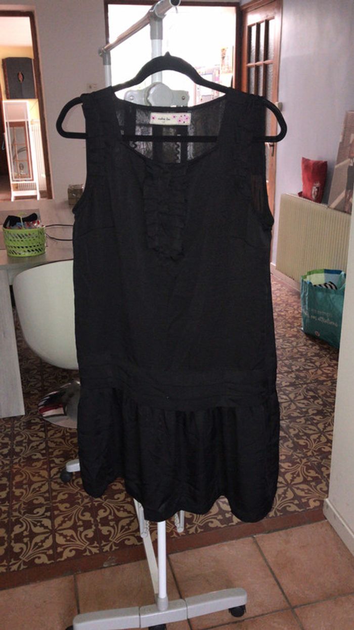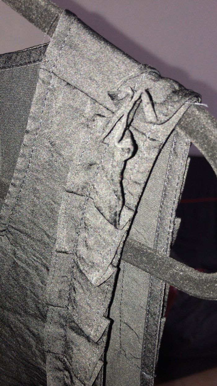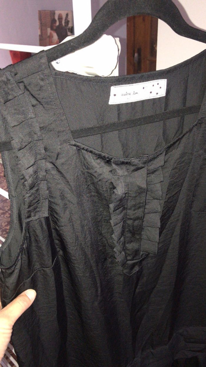 je vend cette tunique noire en très bon état parfaite pour l’été il y a des frou-frou sur les bretelle ,des motif qu’il forme une ceinture voir photo , et motif au col , taille 42/44 #été #tunique