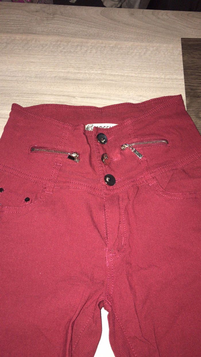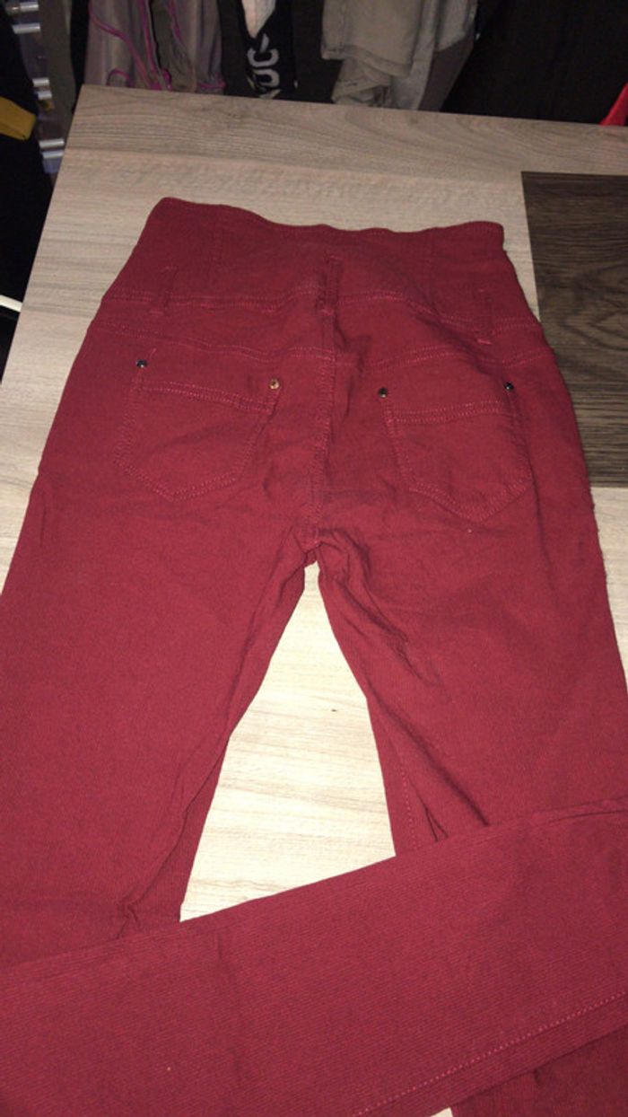 pantalon tissu stretch bordeaux taille haute taille 36 , il fait quelque bouloche sur un coté mai rien de méchant ( voir dernière photo )pour plus d’info n’hésitez pas 😁
