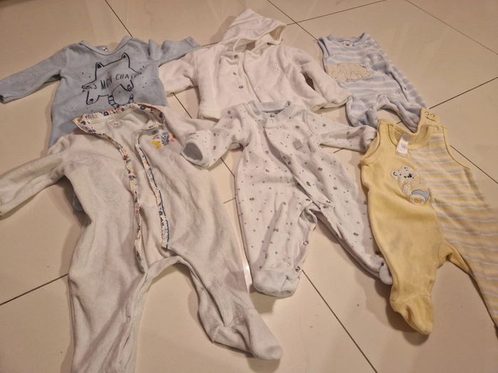 Lot de 5 pyjamas hiver / mi saison + 1 veste chaude à capuche De la naissance à 3mois : 45 à 60cm Marques La compagnie des petits, absorba, Baby Gap, tch baby, Bébé rêve Lot dissociable si besoin, dites moi 🙂