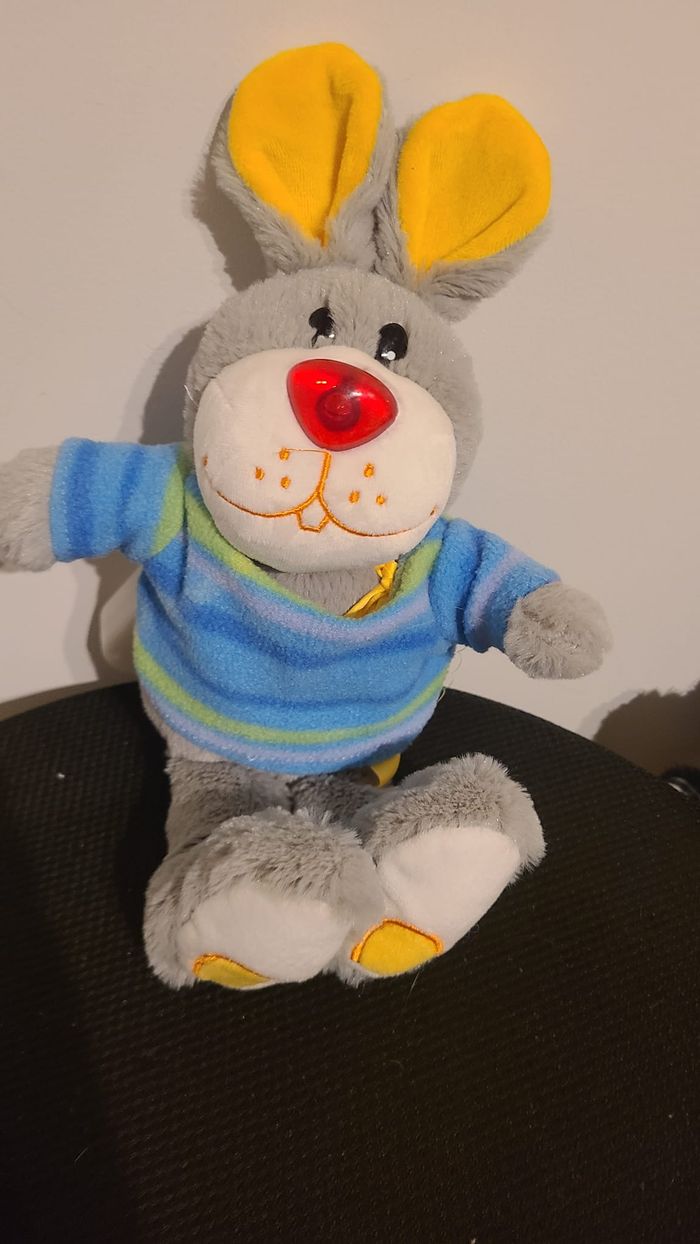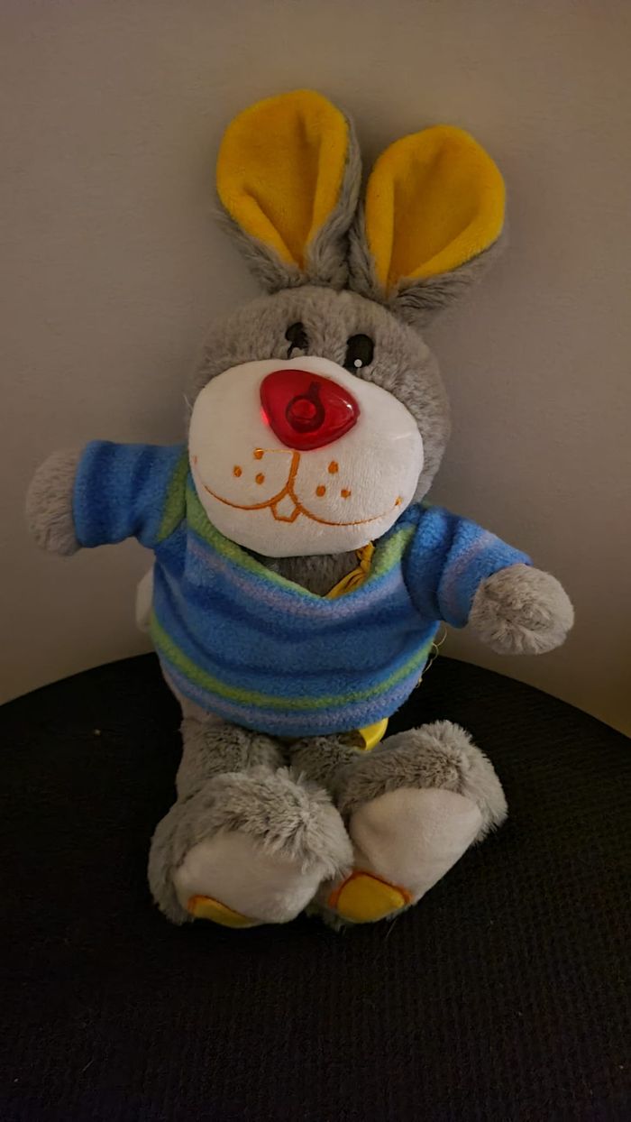 Doudou peluche sonore lapin gris bleu jaune vert WINDEL GMBH - photo numéro 1