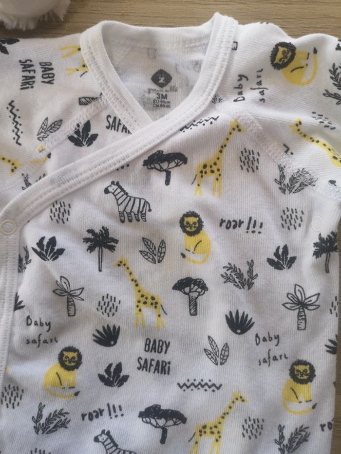 Bodie manches longues blanc avec safari en motif, unisexe Excellent état Taille 3 mois Z #justine180814_bebe #justine180814_fille #justine180814_garçon #justine180814_garçon_3mois #justine180814_fille_3mois #justine180814_unisexe