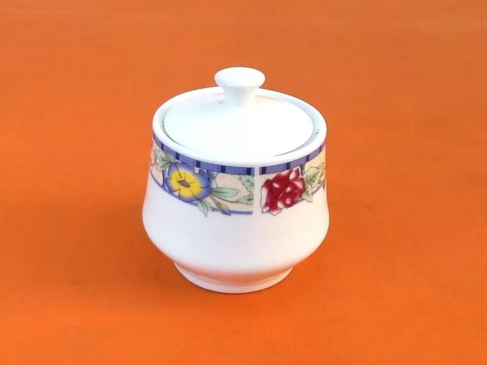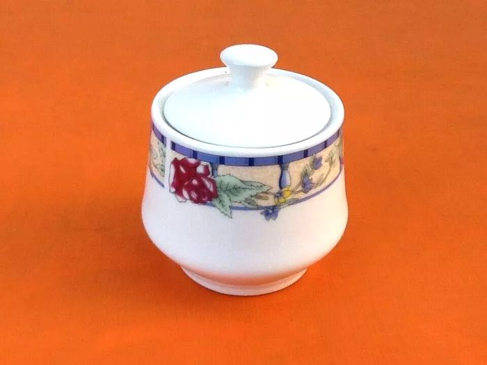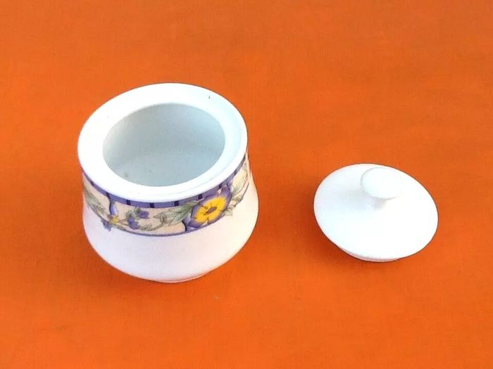 Sucrier   Porcelaine blanche ornée d' une frise florale - photo numéro 1