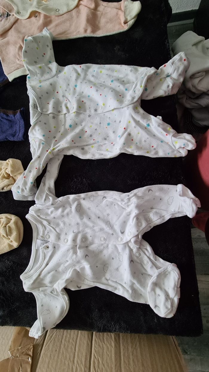 Lot de 5 pyjamas garçon ou mixte de taille 0mois naissance composé de 3 en cotons et 2 velours. Très peu porté et diverses marques. J'offre des bodys assortis avec ce lot.