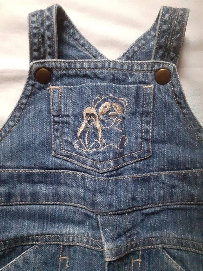 Salopette jean bleu motif ours et pingouin - photo numéro 1