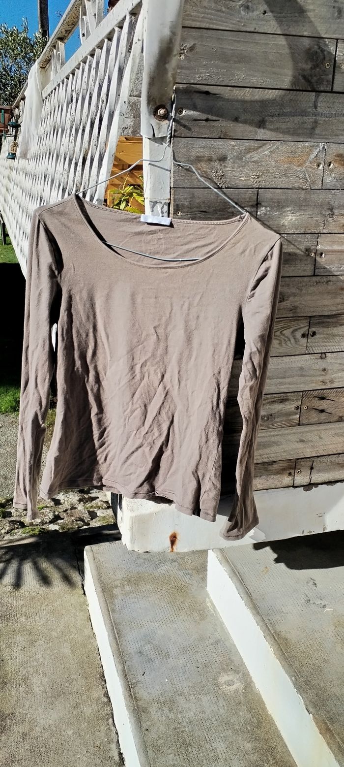 T Shirt beige à manches longues pour femme. Marque Promod. Taille 2. Comme neuf. Que mondial relais ou Relais Colis.