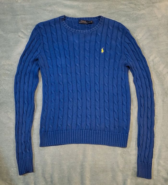 Pull Torsadé Bleu - Logo Vert Fluo  🐎  Ralph Lauren  - Taille S - photo numéro 1
