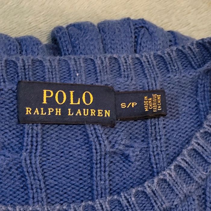 Pull Torsadé Bleu - Logo Vert Fluo  🐎  Ralph Lauren  - Taille S - photo numéro 5