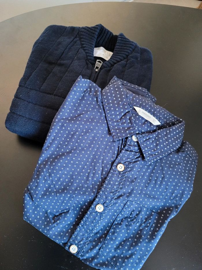 Lot d'une chemise Mango taille 8/10 ans et un gilet Zara 9 ans. #jeannegomez_teeshirt_enfants #jeannegomez_gilets #jeannegomez_zara #jeannegomez_mango