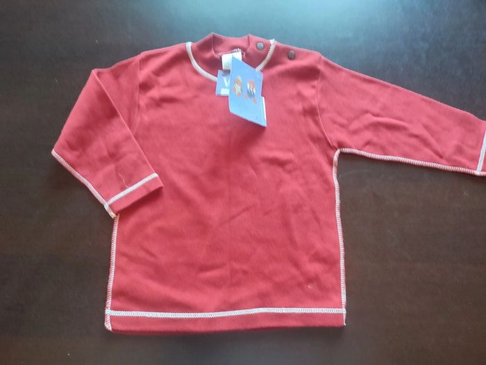 Haut VALENRI Rouge avec surpiqures blanches Fermé par pressions sur 1 épaule 100% Coton TAILLE 12 MOIS NEUF AVEC ETIQUETTE Allez voir mes autres ventes!