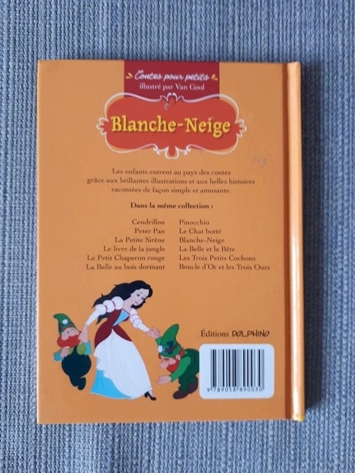 Vends livre de contes pour les petits Blanche-neige DOLPHINO très bon état ( très légères marques d'usures aux angles de la la couverture, à peine visible , voir photos)