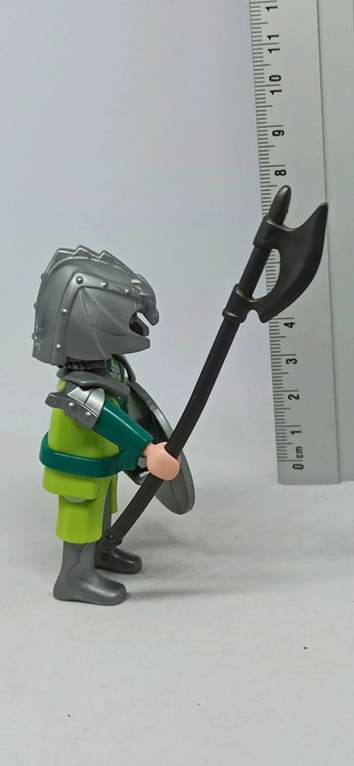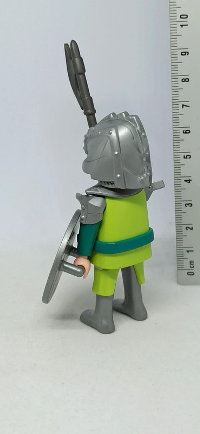 Homme chevalier motif dragon avec bouclier rond vert et rouge playmobil