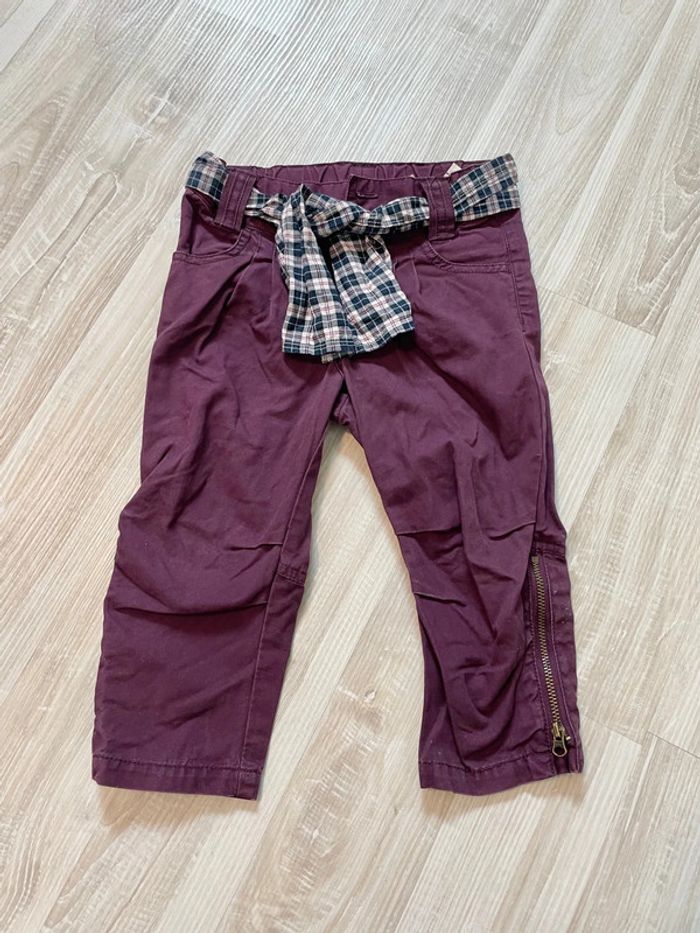 ▫️pantalon en coton avec ceinture en tissu ▫️taille réglable, fermeture avec bouton ▫️taille 12-18 mois (env 86 cm)