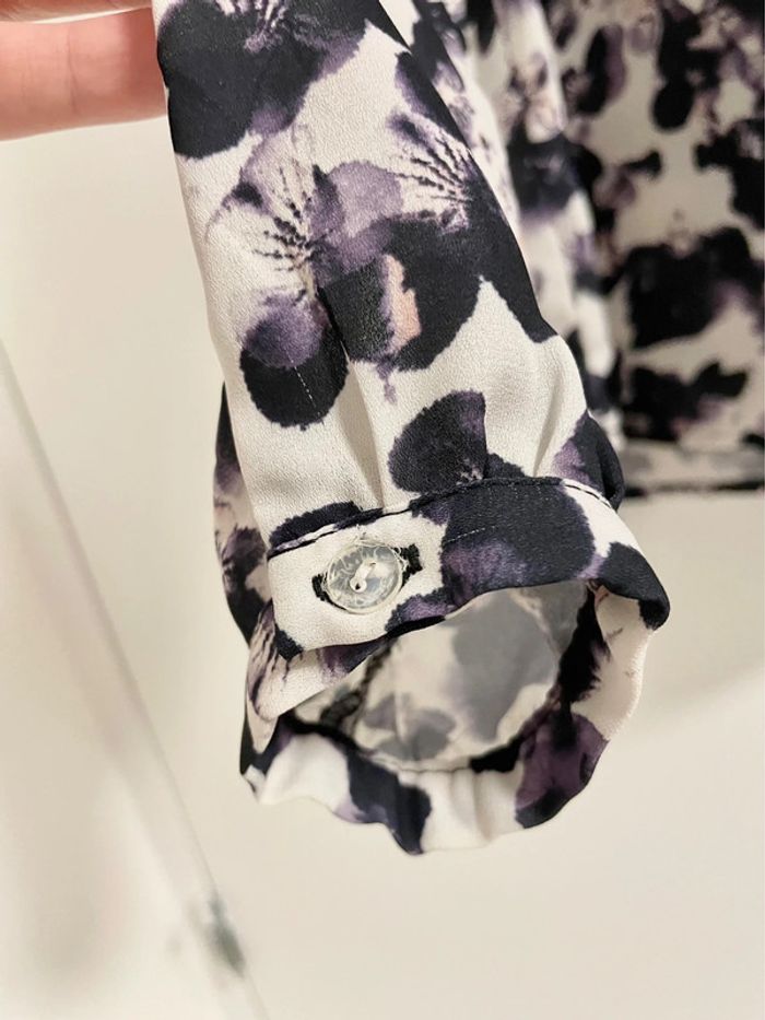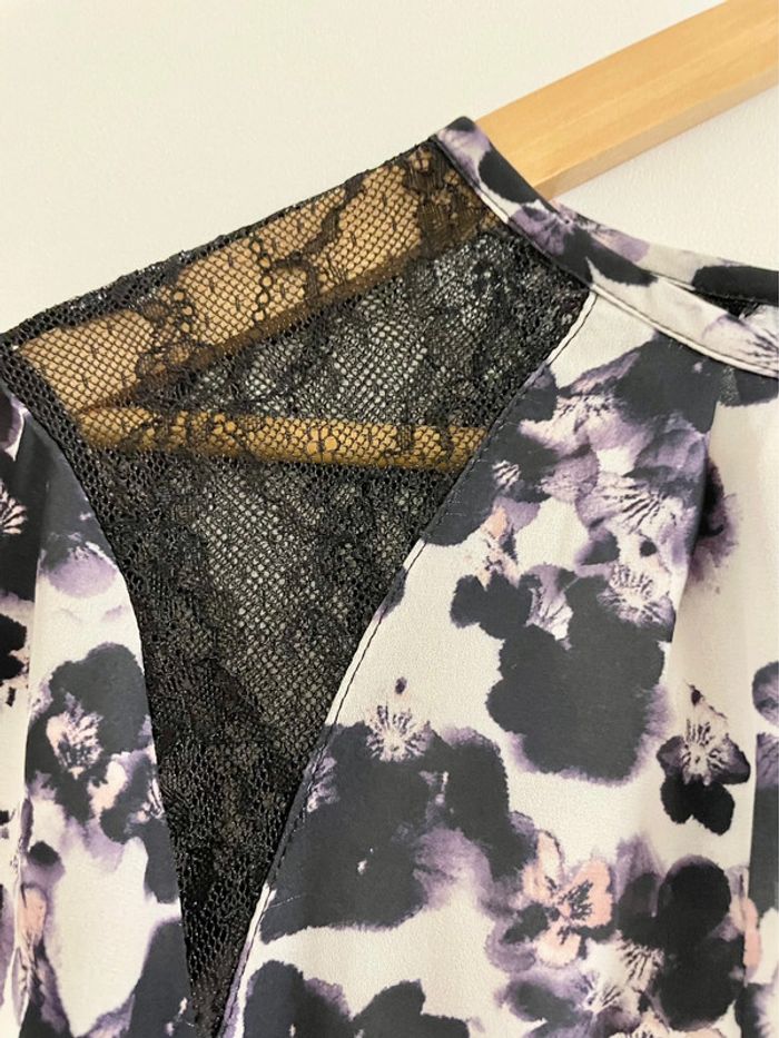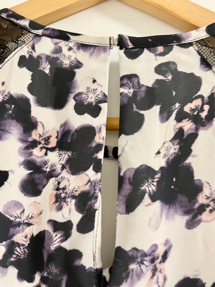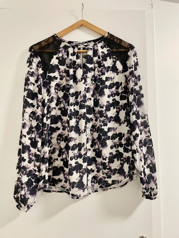 ▫️jolie blouse à manches longues, col rond légèrement ouvert en V sur le devant et dans le dos ▫️empiècements en dentelle noire sur les épaules ▫️boutons aux manches ▫️taille S ▫️article comme neuf ▫️