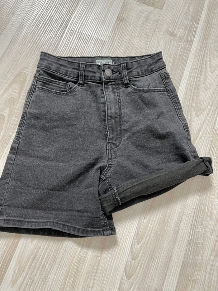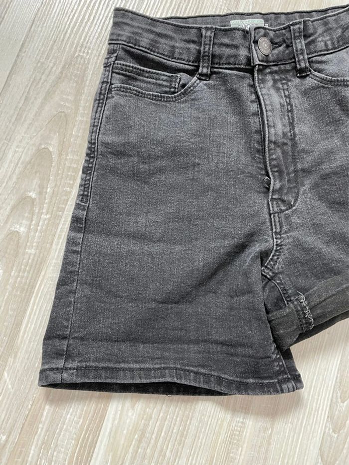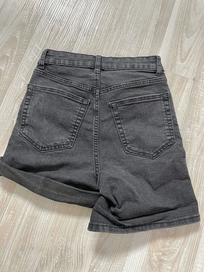 ▫️short en jeans gris foncé ▫️taille assez haute, possibilité de faire un revers en bas ▫️taille 32 ▫️très peu porté, était comme neuf