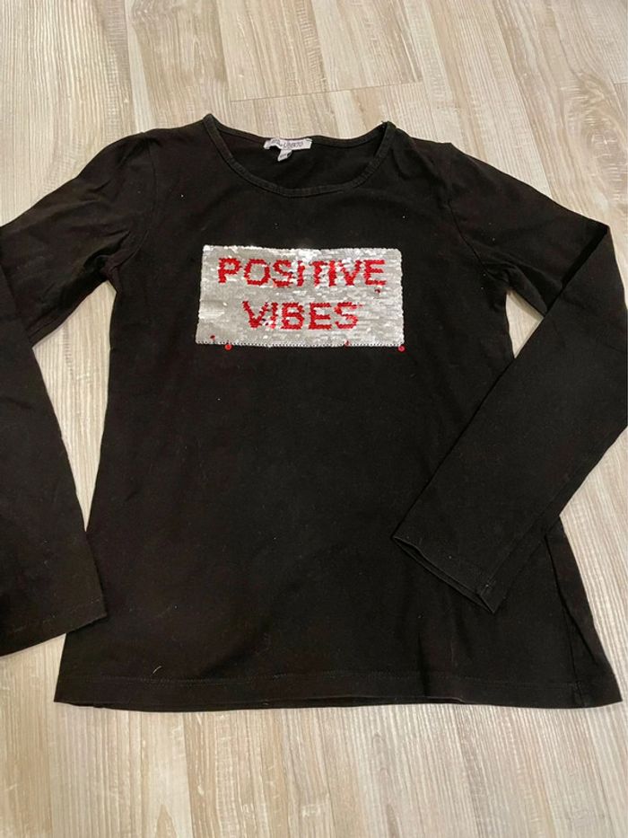 ▫️tee-shirt manches longues, col rond ▫️motif à sequins sur le devant ▫️taille 12 ans