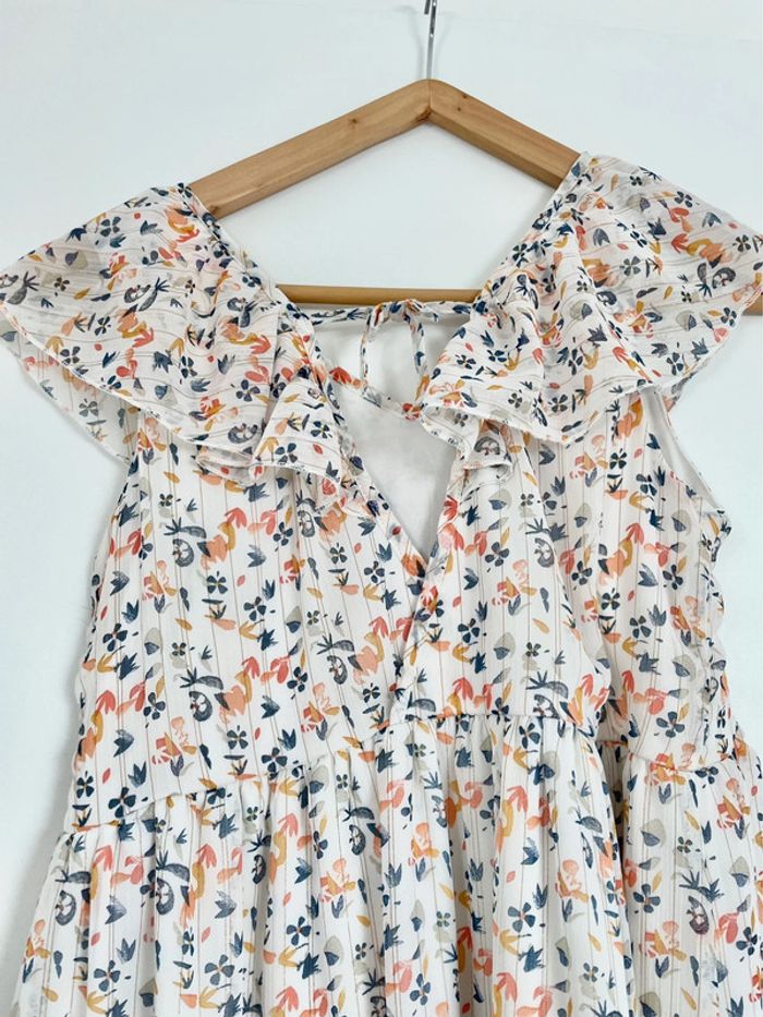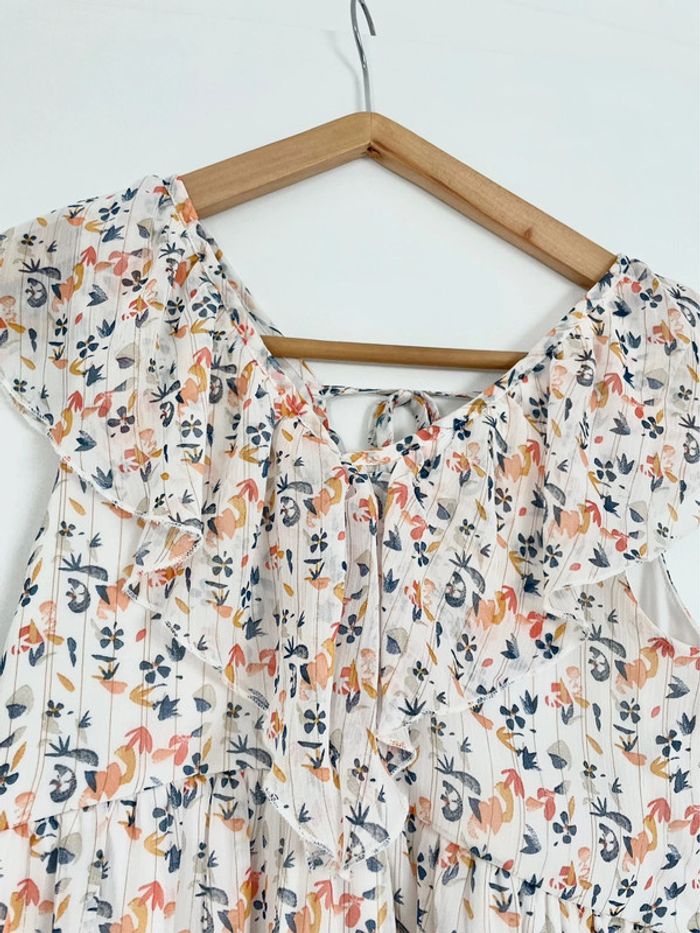 ▫️jolie robe d’été en matière légère ▫️bretelles avec volants sur les épaules ▫️entièrement doublée de tissu blanc ▫️col V avec volant ▫️dos ouvert (croisé avec un lien) ▫️robe comme neuve, portée 1 fois