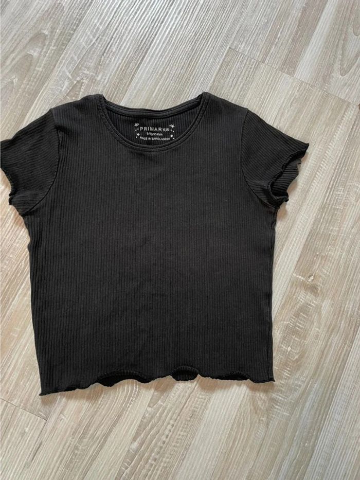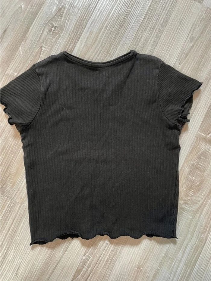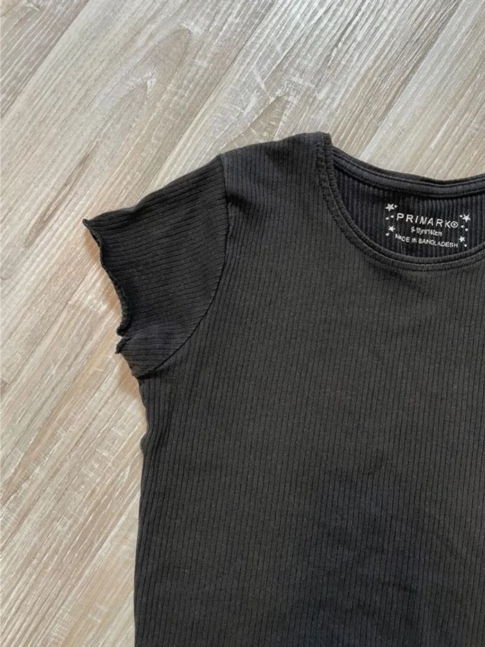 ▫️top court manches courtes, col rond ▫️coton finement côtelé ▫️taille 10-11 ans ▫️couleur noir