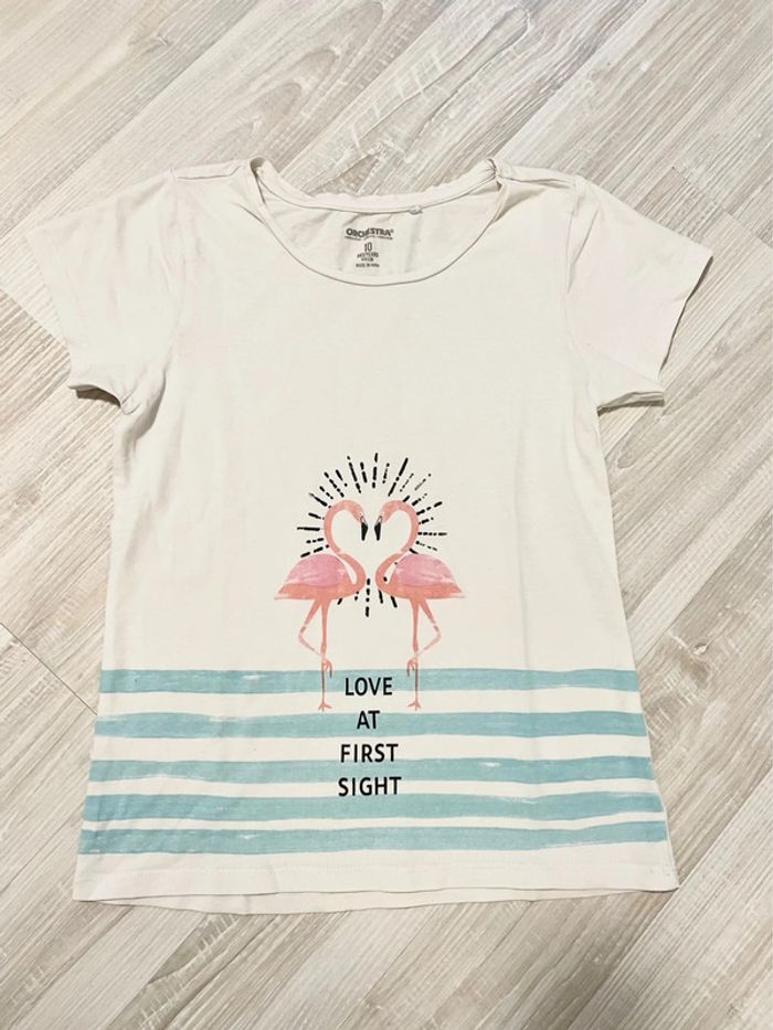 ▫️tee-shirt manches courtes, col rond ▫️motif flamants roses ▫️taille 10 ans #orchestra #teeshirt #10ans