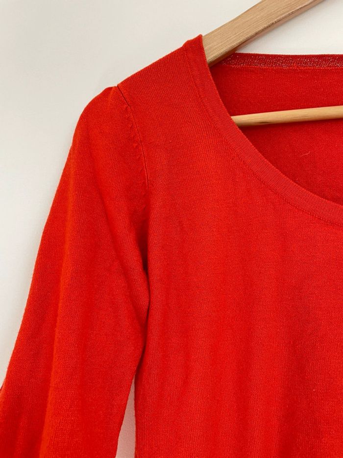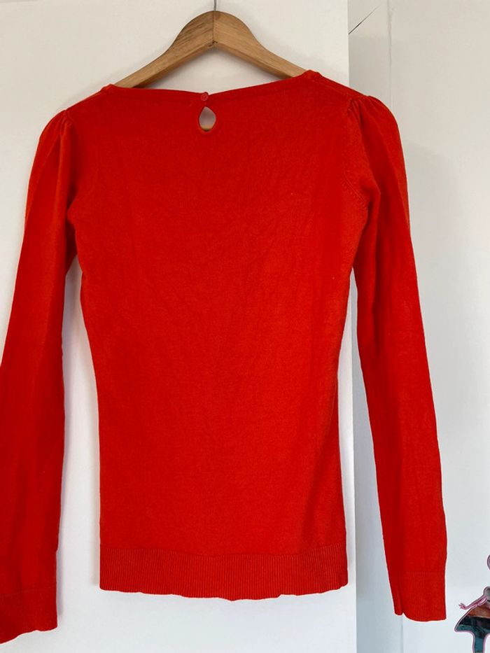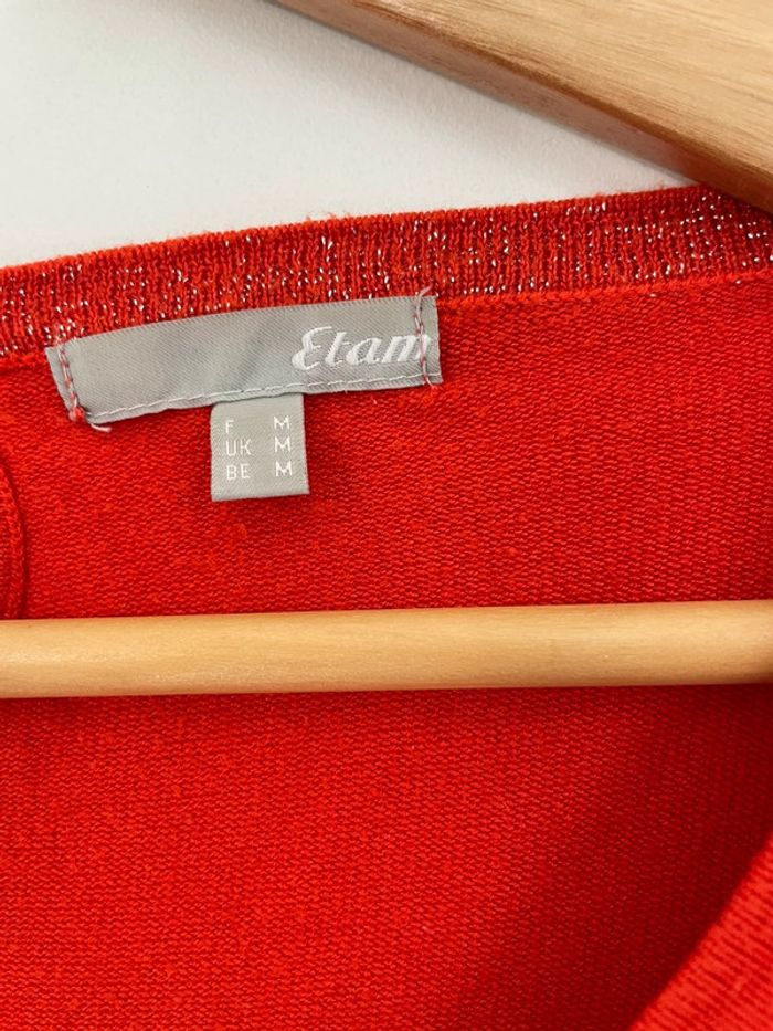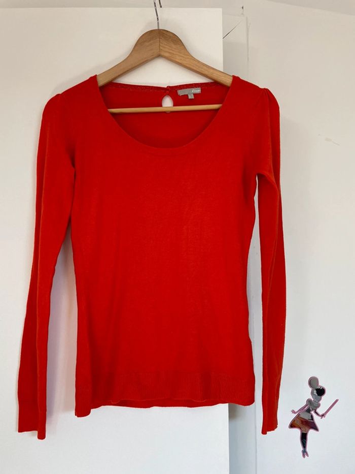 ▫️joli pull en mailles fines Etam ▫️manches longues, col rond ▫️dos fermé par un bouton ▫️couleur rouille orangé #pullfemme#etam#taille38#tailleM