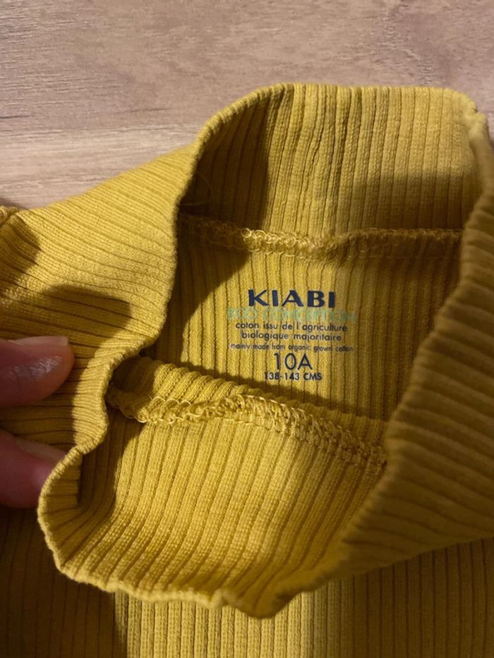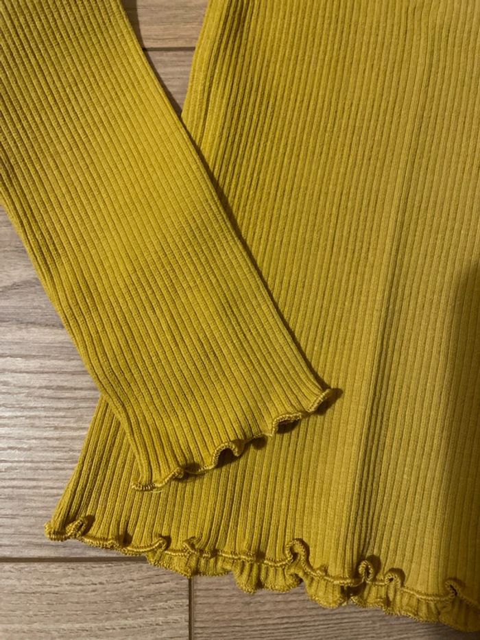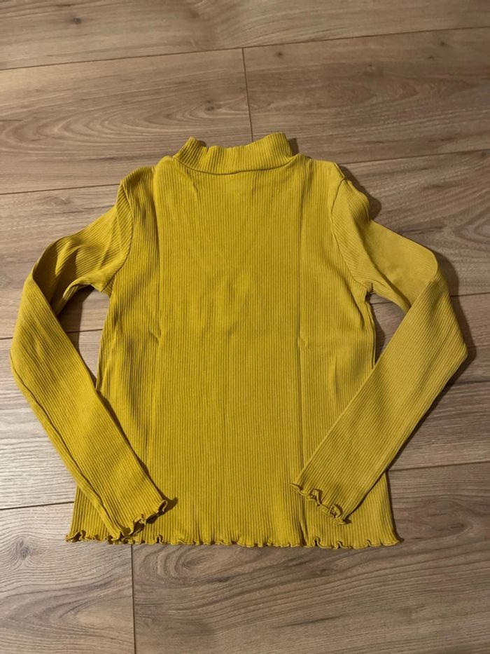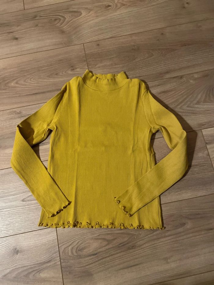 Pull fin en matière côtelée, près du corps Col cheminée Manches et bas avec vagues Couleur : moutarde Jamais porté mais il a été lavé une fois #lmpereirafille10ans