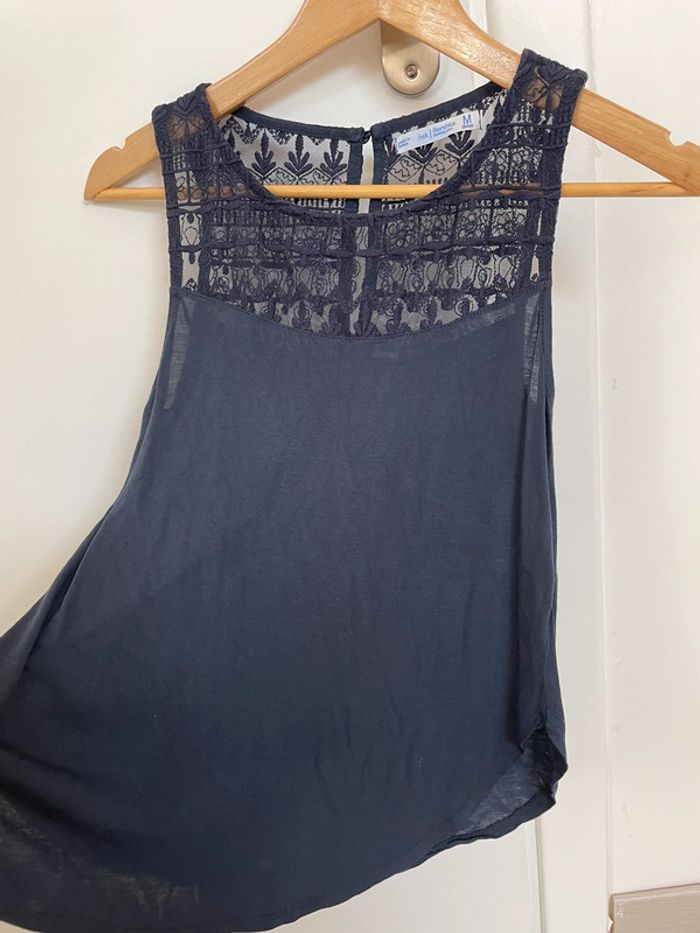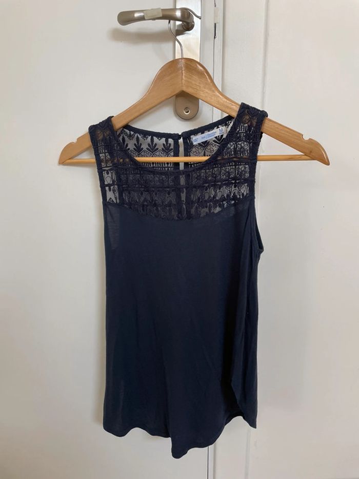 Joli top sans manches avec haut en dentelle Bouton pour fermer en haut du dos Taille : M #lmpereiravetementsfemme