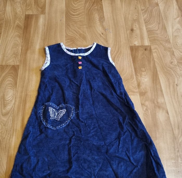 robe courte ( longueur genoux) en velours côtelé bleu poche à l'avant avec papillon brodé. taille 6 ans très bon etat #robefille #robebleu #robecourte #robevelours #taille6ans #fille6ans