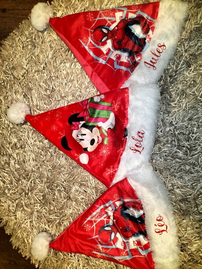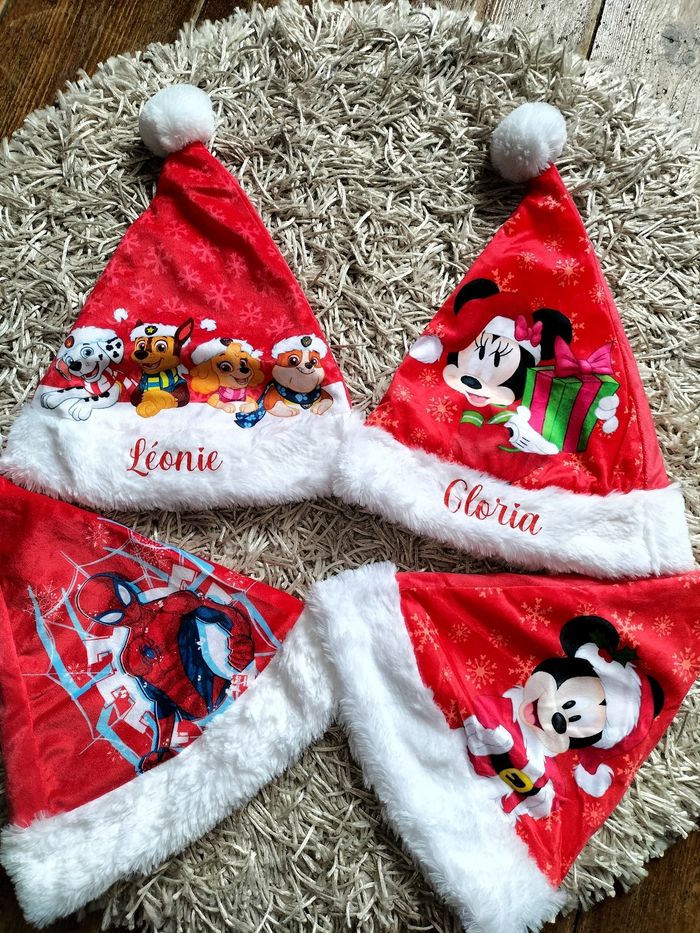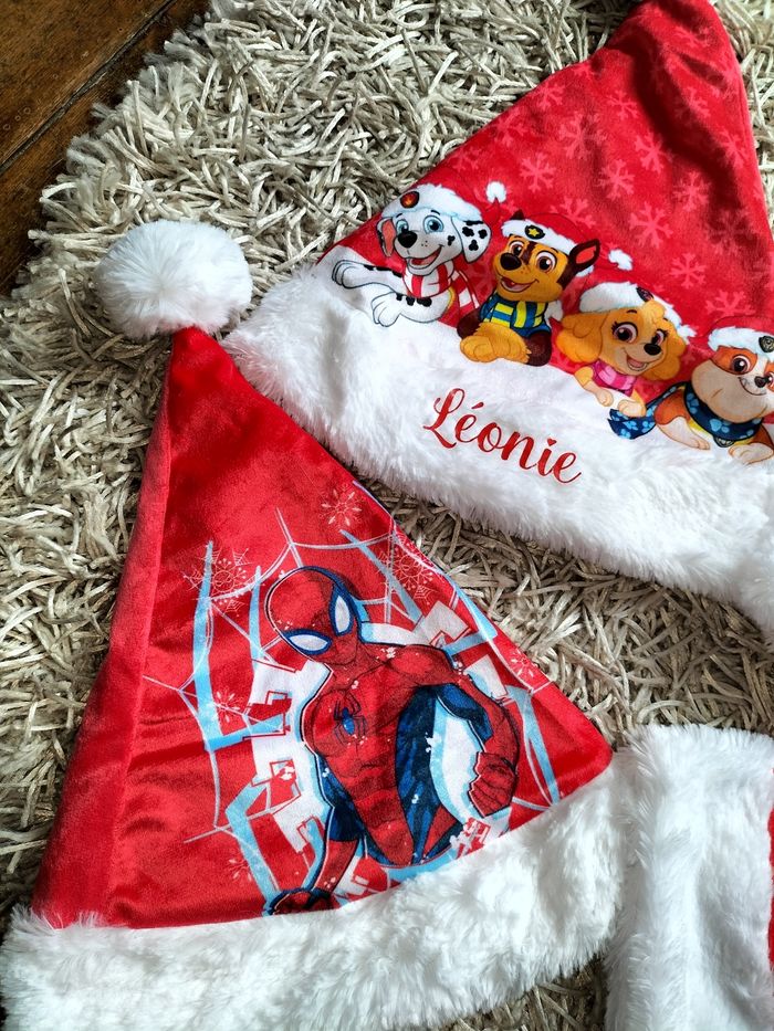 Bonnet chapeau de Noël Pat patrouille spiderman Mickey minnie Prénom au choix