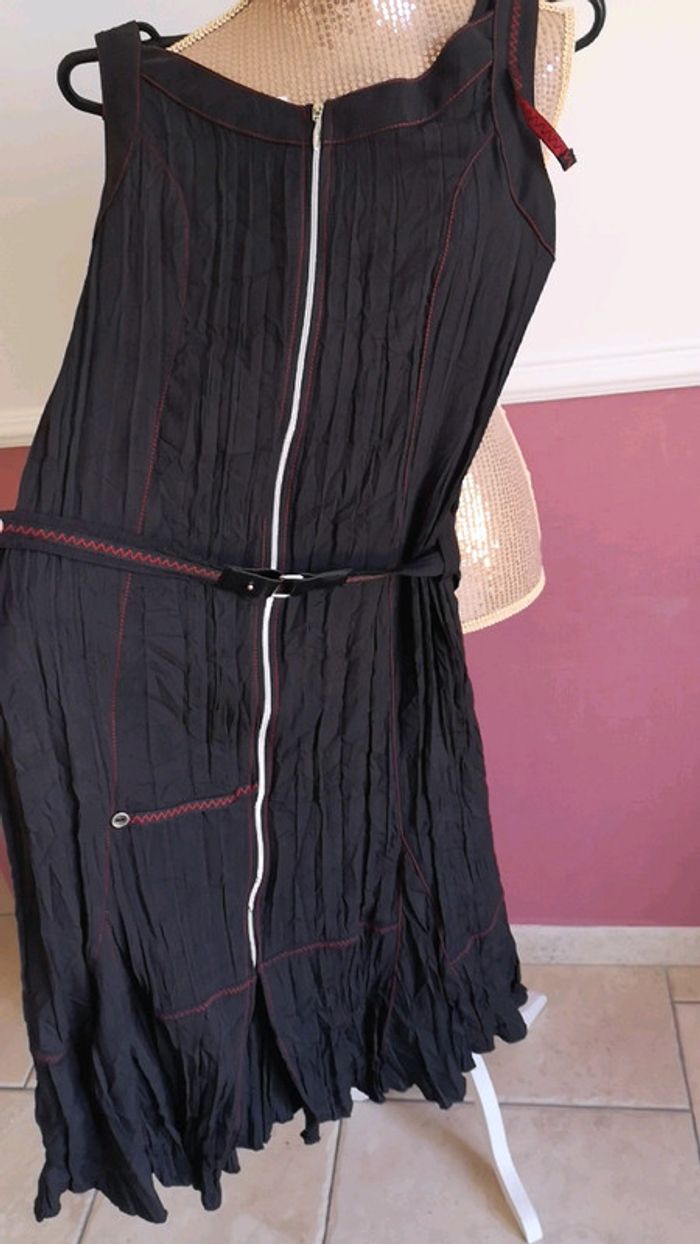 #marine0507191420femme38ouM Magnifique robe neuve noire Fermeture éclair sur le devant Effet plissée Ceinture Taille 38 Marque clara vitti Neuve avec étiquette
