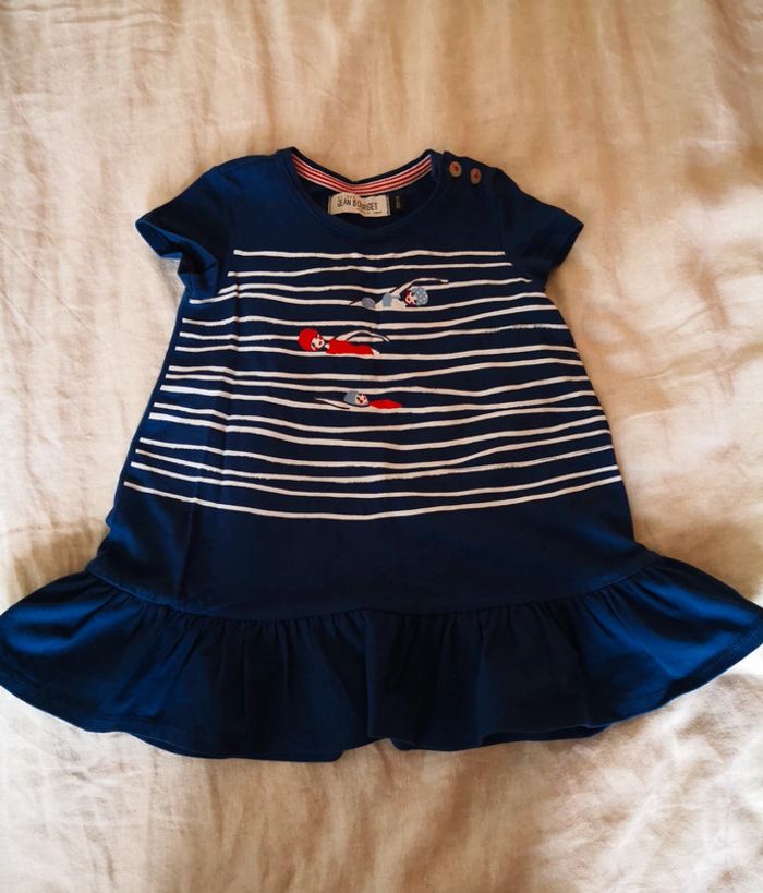 Robe jean Bourget Taille 18 mois Bleue marine avec petit effet marinière avec les motifs Très agréable a porter Comme neuve ( portée 1 fois ) Logement non fumeur Autres articles non publiés : catimini, 3 pommes, jean Bourget, Okaïdi... De la naissance a 4 ans ! N'hésitez pas a me demander !