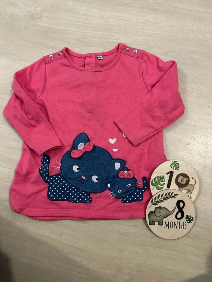 Un rose avec points blanc marque verbaudet Un rose avec chat marque inconnu ( pull un peu ebouloché , je ne sais pas si ça part ) #habits #vetements #veste #pantalon #gilet #leggings #tshirt #pull #18mois